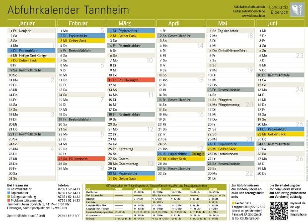 Klicken Sie auf das Bild und Sie erhalten den aktuellen Abfuhrkalender der Gemeinde Tannheim.